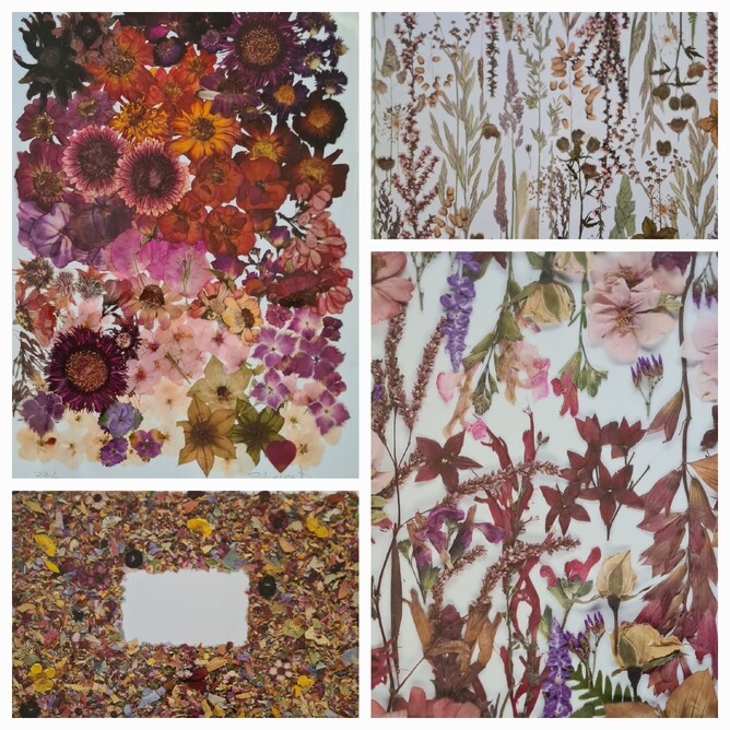 Created especially for my Exhibition recently, a limited range of Fine Art Prints are for sale. Currently A4 and A3 size these sizes can be changed on request. Ready for you to pop into a ready made frame or have them custom framed. From flowers I have grown, pressed and arranged in artworks these are then High resolution scanned to produce almost a 3D look, from Archivable Inks and Papers the colours will last. These prints come with their own Authenticity Certificate, numbered and signed by myself. There is a combination of Portrait and Landscape available....from $50.00nz plus postage and packaging. Jump back to my Botanicial page to view, they will have an (AJwithS) code and send me a contact request. I have also shown examples of them framed with Matt Boards and white Frames.