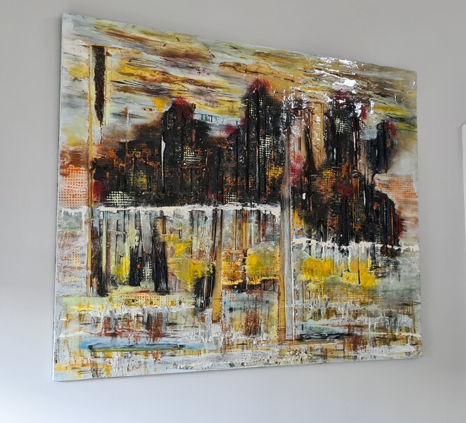 2025 brings the desire to put together a collection of new works following my ethos of reusing recycled and repurposed materials. This collection celebrates taking raw materials and adding textures, metals, paint leaving some elements in their raw state. Some works I have custom framed in recycled Aluminium and Copper a bit beaten up showing wear and tear of their pervious life matching with the rawness of the pieces. Most of these pieces are large ( Manhattan New York above 1.2m x 1m ) and I am enjoying the scale of them. I have completed No# 2 ( Bars to Liberation) and currently completing No #3. I have decided to put my energy's into these works this year and not enter so many awards, to allow my focus be concentrated. If this work interests you, drop me a contact question.