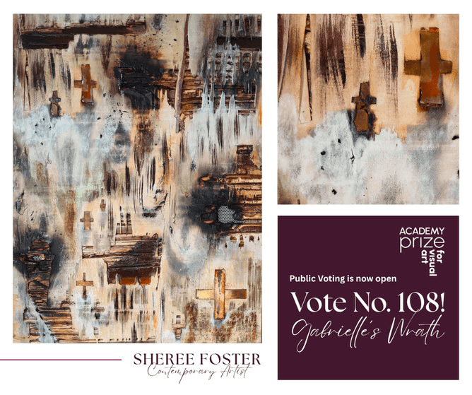 My multi media "Gabrielle's Wrath" has been selected for this years Academy of Fine Arts awards. This piece constructed from layers and depths of wood, repurposed metals and copper, fire, and paint techniques is a large piece 1000mm x 700mm. Framed in a beautiful hand crafted copper frame. The inspiration came from witnessing catastrophic destruction from the wrath of Cyclone Gabrielle in 2023. The emotions it raised, the grief, the loss it brought to all of us. This year YOU get to vote for the finalists along with the 3 judges, 20 seconds of your time would be appreciated. Simple go to website www.nzafa.com click vote box, scroll right down to bottom of page and enter your details, NUMBER 108 and confirm. Plus you could win a trip to Wellington, courtesy of Double Tree Hotel Wellington. I appreciate your support. Gala evening 6th August 25 and open to public 7th to 24 August Takina Wellington Convention Centre.